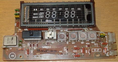 Напоследок взял плату часов с ИЛМ2-7Л. Очень хорошо видна страсть наших производителей к копированию западного - на этом индикаторе неделя начинается с ВС и есть ДП и ПП!