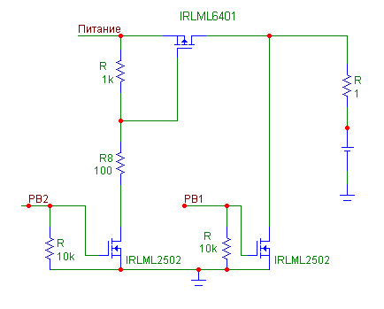 После переграва деталей, пробывал менять все компоненты, тоже самое, греется и все тут. Вроде плату разводил строго по схеме. VT1 и VT2 по цоколевке "Э" - "К" - "Б" подключал, тоесть со стороны букв слева - направо (нашел в инете), правильно? IRLML2502TR по даташиту (D - который подключается к R2, S - земля, G - PB2 (относительно VT3)). Контроллер работает, Fuse по умолчанию - внутреннее тактирование 1 Мгц. Если вынуть контроллер - зарядки нету. Блин вроде все правильно сделал, только в программу данные передаются не правильно, и интересно определяет ли прошивка напряжение, или просто так дает зарядку. Поясните пожалуйста. Описал подробнее чтобы не возникало вопросов, и как в службе тех поддержки не предлагали "перегазгурзить" оборудование и прочее. Прошу помощи