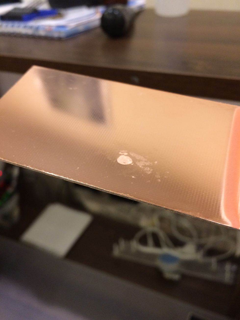 Электролит свежий, неделю назад приготовленный, приработанный 4 часа без блеска и час с блеском. Плата без химмеди покрылась почти ровным слоем, блестит хорошо, есть небольшие раковины. А вот с химмедью результат пока плачевный. Видимо дело именно в ней. Mial дал несколько советов, сегодня буду эксперементировать дальше.