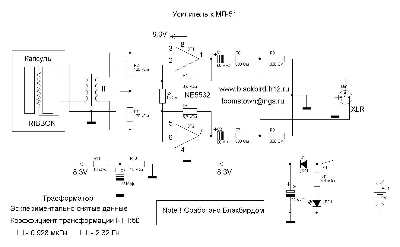 На рисунке выслал схему усилителя специально для мл 51.