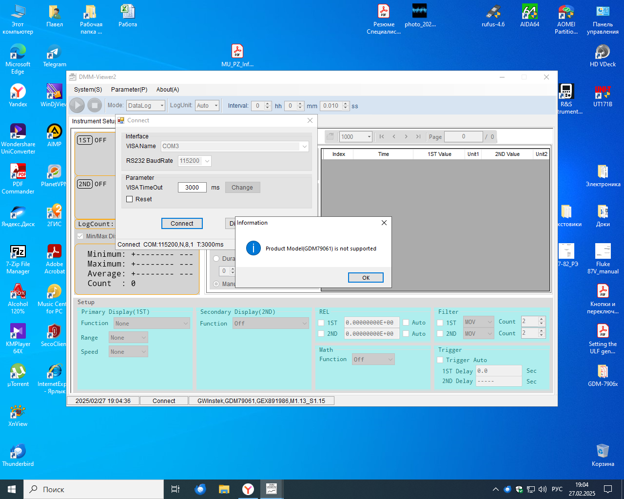 Speed = 100 изм./с) явно указывают на несоответствие частоты измерений, устанавливаемой в приборе с помощью параметра