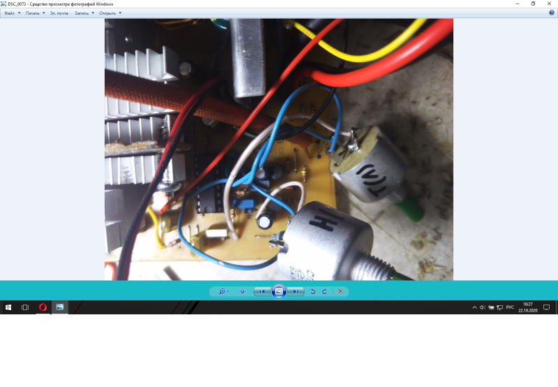 "Частоту формируют 1нФ и 18кОм" У меня такие-же номиналы. Значит 80 кГц не может быть. Возможно это обман зрения, из-за наложения двух развёрток с разным моментом синхронизации. Тут опять же напоминаю, нужно смотреть на ждущей развёртке. Главное что на 8 и 11 ногах НЕ МОЖЕТ БЫТЬ 20 с лишним ВОЛЬТ! Или что-то не так подключено или измерено, или там серьёзные ошибки в схеме. Возможно оборвано что-то. Откройте мою схему, и внимательно проследите соединения. Фото монтажа! То есть и плата с обоих сторон, и провода которые к плате подходят. Нужно разобраться могут ли быть электромагнитные наводки. НО! Пока вы не разберётесь почему у вас такие напряжения на 8 и 11 ножках, думаю остальное не имеет смысла. Или вы не так меряете, или там серьёзные ошибки в схеме, и в этом и причина такой работы блока.