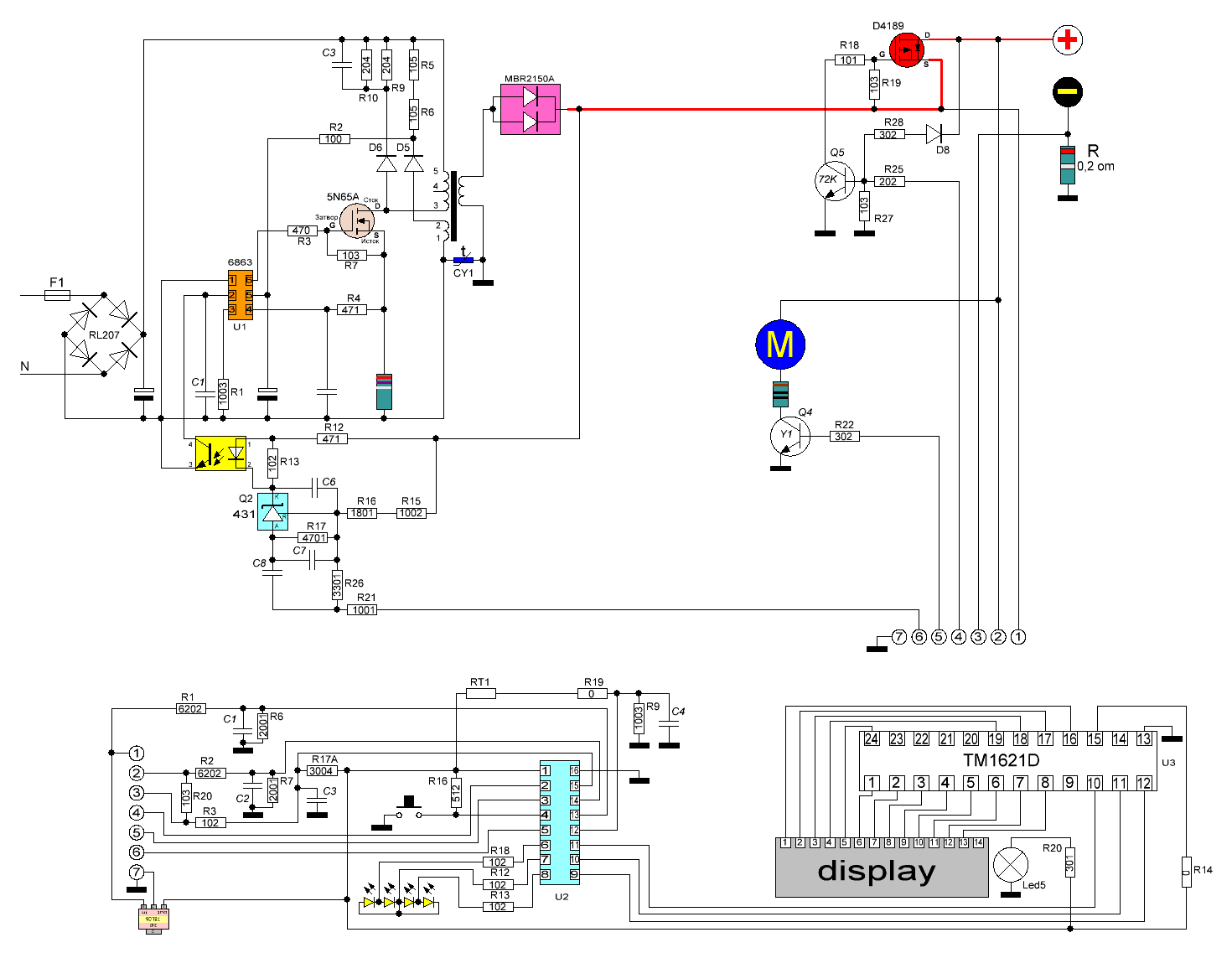 dreamwait, телепаты в отсутствии, та цепочка - сначала подключить акк а потом в сеть. У вас - может быть более упрощенная схема - либо акк от мота неисправный либо R=0.2 ома чем-то закорочен. Дополню - параллельно сетевому проводу подпаяйте пару из параллельных элементов - супрессора 1.5КЕ350СА и варистора на 390в, при отсутствии именно с такими параметрами - допустима замена на супрессор 1.5КЕ400СА и варистор на 431в - даннвя цепочка убережет ваше зарядное от перенапряжений сети - допайка производится до предохранителя