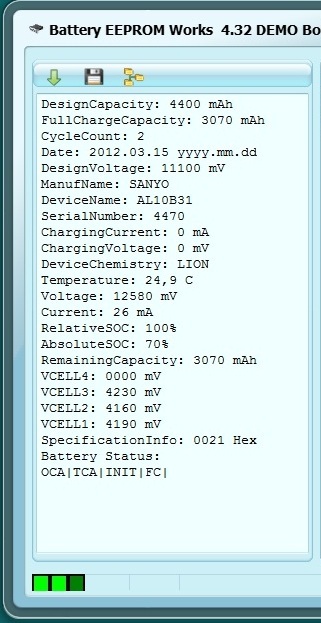 Добавлено after 7 minutes 44 seconds: vsuper, Я еще раз Вам очень благодарен за дамп прошивки с помощью которого мне получилось запустить мою аккумуляторную батарею в работу.