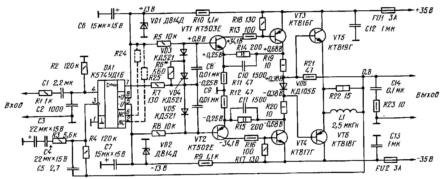 Привет всем. Я давно хотел собрать качественный усилитель на транзисторах но в связи с тем что я не дружу с транзисторами я все время откладывал сборку но это же не может длится вечно и вот пришло время подружится с транзисторами. так вот я хочу собрать усил на с номинальной мощностью 70 ватт не меньше можно больше но не более 100ватт есть два условия чтобы питание было не больше 30 вольт и чтобы усил вместился в корпус у-101-стерео да и ещо забыл желательно чтобы он был по качеству выше чем tda 7294. я посмотрел в просторах интернета и нашел одну схемкуона конечно не особо лучше tdaшки но довольно прости и по питанию подходит и по мощьности как вам эта схема и какие схемы вы можете мне предложить За ранее спасибо!!!