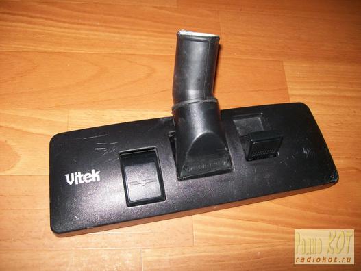 Затем настал черёд щётки. Мне попалась интересная - от Vitek. На совдеповский алюминиевый наконечник она надевалась с большим зазором. Пришлось отпилить кусок от старого пластмассового наконечника "Тайфуна" и подогнать его. А заодно почистить щётку, запилить сработавшиеся узлы трения и заклеить их скотчем для лучшего скольжения. Этот старый индейский фокус позволяет позже просто ободрать старый скотч и заменить его новым. Как понимают уважаемые коты, при таком количестве пыли, как в насадке пылесоса, любая смазка пойдёт коту под хвост!