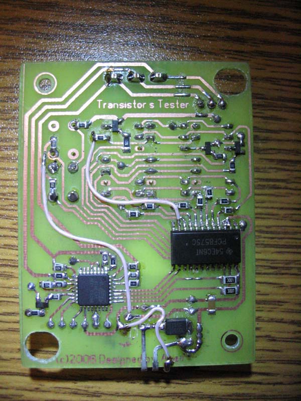 ![]() Для анализа транзистора используется 9 линий ввода/вывода микроконтроллера ATMega8. Они разделены на 3 группы по 3 вывода, в рамках каждой группы к выводу подключен резистор на 100 Ом, 1 кОм или 3 кОм. Назовем условно резистор 3 кОм "базовым", 1 кОм - "коллекторным", а 100 Ом, соответственно, "эмиттерным" (эти резисторы расположены в разных группах выводов!). Будем рассматривать n-p-n транзистор. Подадим на вывод контроллера, к которому подключен коллекторный резистор, уровень логической единицы, а на вывод эмиттерного резистора - уровень логического нуля. Остальные выводы введем в высокоимпедансное состояние для исключения их влияния. Таким образом, мы получили транзистор, включенные по схеме ключа. Если теперь подавать на базовый резистор периодический сигнал, то через резистор 100 Ом, подключенный к коллектору, можно считывать получаемый на этом выводе транзистора сигнал и, если он инверсный по отношению к базовому, говорить о работоспособности транзистора, порядке следования его выводов и структуре. Для однозначного определения этих параметров следует дополнительно включить транзистор как эмиттерный повторитель, для чего следует подать единичный уровень на резистор 100 Ом на коллекторе и нулевой уровень на резистор 1 кОм на эмиттере и через резистор 100 Ом на эмиттере снимать сигнал, который в данном случае должен повторять базовый. Если хотя бы одна из этих проверок не удалась, следует сделать другое предположение относительно расположения выводов транзистора и заново провести цикл измерения. Всего существует 6 сочетаний расположения выводов транзистора для каждой из структур, т. е. в общей сложности за 1 акт тестирования происходит перебор 12 возможных вариантов. Состояние битов регистров портов контроллера в случае анализа транзистора структуры n-p-n для всех 6 вариантов приведено в таблице Excel в архиве.
