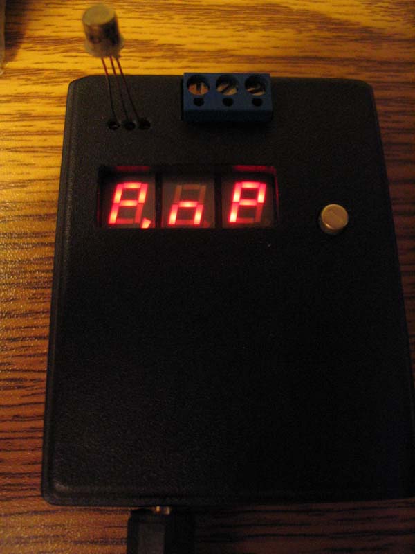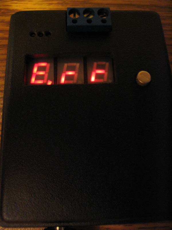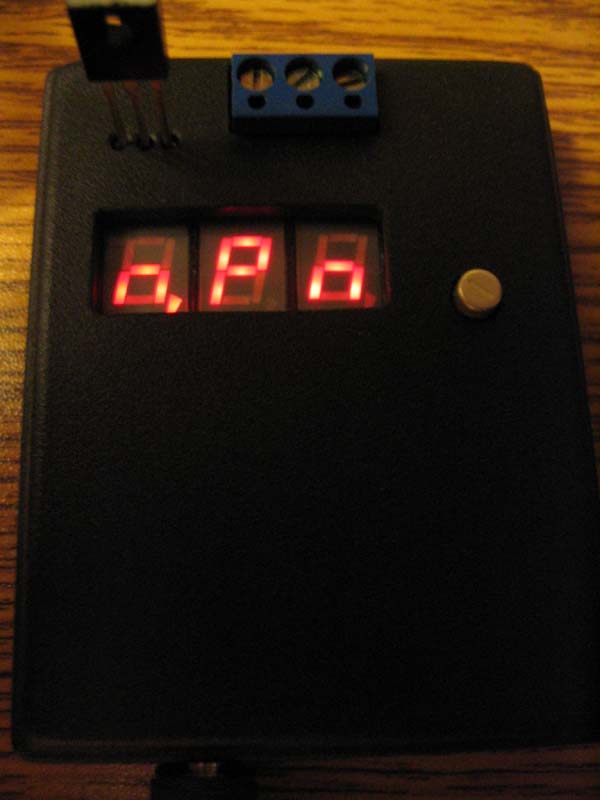 Результат работы прибора отображается на трехразрядном семисегментном индикаторе из трех АЛС324Б1. Индикация динамическая, для экономии выводов контроллера (хотя здесь это не очень актуально) и упрощения разводки выполнена с помощью 16-битного расширителя портов с управлением по I2C PCF8575, линии Р0-Р7 задействованы для управления сегментами, линии Р15-Р17 - для управления анодными транзисторами.