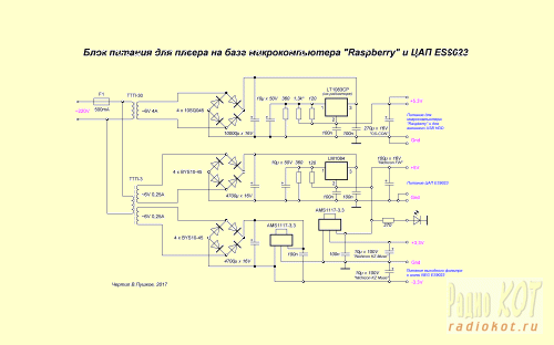 Автор: Pushok62 Появление в последнее время в продаже недорогих китайских ЦАП приблизило мечту многих любителей звуковоспроизведения попробовать свои силы в создании качественных источников звука. Конечно, чтобы от этих устройств добиться более-менее приличного звучания, необходимы их доработки, и эти вопросы активно обсуждаются на разных аудиофильских форумах. В результате экспериментов у меня получилось законченное устройство, конструкцией которого я решил поделиться с радиолюбителями. Возможно, многие уже знакомы с микрокомпьютерами типа «Raspberry» («Малинка»), и имели возможность попробовать их в деле. Рассматриваемое устройство собрано на основе Raspberry Pi3 Model B (https://www.raspberrypi.org/products/raspberry-pi-3-model-b/), к которому подключён по шине I2S доработанный китайский ЦАП ES9023 (https://www.ebay.com/i/322364288730?rt=nc) с отображением информации на ЖКИ и управлением с помощью кнопок на передней панели и с ИК пульта. В качестве операционной системы (ОС) для «Малинки» было выбрано программное обеспечение RuneAudio (https://www.runeaudio.com/certified-devices/#Raspberry-Pi-3), но можно использовать и другие аналогичные ОС, например, Volumio или Moode, правда в этом случае вопросы подключения ЖКИ, кнопок и ИК управления придётся решать самостоятельно. Здесь предлагается решение «из коробки»: на SD-карту заливается готовый (модифицированный) образ RuneAudio, в котором уже реализовано подключение ЖКИ, обработка нажатия кнопок и приём команд с ИК пульта типа FZ0721, и после включения всё сразу должно заработать :). В случае необходимости какой-либо перенастройки необходимо изменить соответствующие файлы конфигурации. При желании, пользуясь приведёнными далее по тексту ссылками, можно также самостоятельно выполнить модернизацию исходного образа Runeaudio, долгими зимними вечерами получая удовольствие от изучения системы Arch Linux, языка Python3 и библиотек сторонних разработчиков. Даже если вы не собираетесь подключать ЖКИ, кнопки и ИК управление, исходный образ придётся доработать для устранения эффекта произвольной смены каналов (https://www.runeaudio.com/forum/digi-rune-and-usb-drive-channel-swapping-t3570.html, https://www.runeaudio.com/forum/sudden-shifts-in-imaging-phase-shifts-solved-t4238.html), а также включить опции для работы с ЦАП по шине I2S (https://www.runeaudio.com/forum/audiophonics-dac-sabre-es9023-i2s-24bit-192-raspberry-pi-t1155.html). Без изменения настроек предлагаемого готового образа к устройству можно подключить практически любой ЖКИ типа 1602 (16 символов 2 строки), при этом вывод названия композиции и исполнителя для русских символов осуществляется транслитом. Если индикатор имеет русскую кодовую таблицу (например, производства МЭЛТ), корректное отображение русских букв можно обеспечить путём замены (корректировки) всего одного файла конфигурации (прилагается в прикреплённом архиве). Можно также изменить соответствующие параметры для использования индикатора типа 2004 (20 символов 4 строки). Использованный ИК пульт FZ0721 (https://www.ebay.com/itm/38K-20-Keys-Mini-IR-Infrared-Remote-Control-NEC-UPD6122-Emission-8m-/172437991402) работает по протоколу NEC на частоте 38 кГц. Имеется готовый файл с кодами кнопок для похожего пульта из набора MasterKit MP1236 (уже снятого с производства). Можно использовать в принципе любой подходящий пульт, выполнив самостоятельно генерацию файла его конфигурации с помощью встроенной команды irrecord (об этом чуть подробнее – в самом конце). Управление плеером осуществляется по локальной сети через веб-интерфейс (для этих целей можно использовать смар