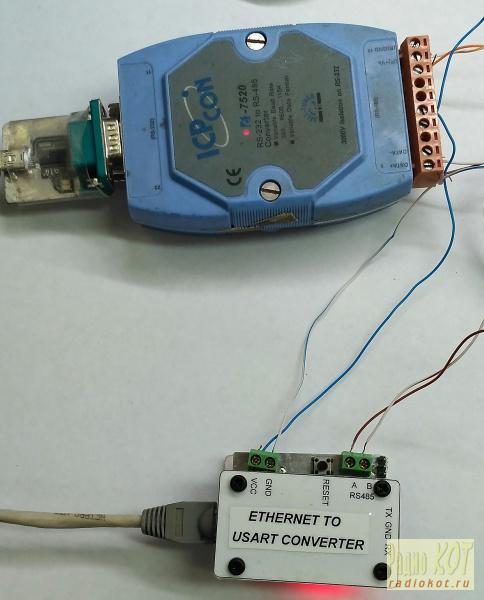 Проверим работу с RS485. Для этого разъединяем RX и TX конвертера, и подключаем переходник USB-RS485.