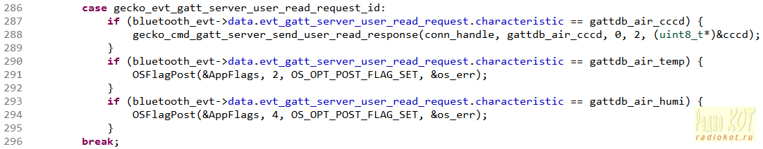 Автор: Сергей Безруков (aka Ser60) В этой части статьи будет рассказано как разработать Bluetooth приложение под управлением Micriµm OS и портировать проект на отдельный внешний Bluetooth модуль. Для первичного ознакомления с Micriµm OS рекомендую прочитать статью [1]. Разработка приложения на демо-плате Первоначальную разработку будем производить на такой-же отладочной плате, что и в первой части статьи [2], именно Wireless Starter Kit Mainboard (BRD4001A) с установленной на ней платой BRD4306A с модулем BGM13P22. В качестве среды разработки используем Simplicity Studio и версию SDK 6.2.4. Нашей целью, как и ранее, является создание сервера температуры и влажности, который будет производить измерение соответствующих параметров среды и отсылать их клиенту (смартфон) либо каждый раз по его запросу, либо периодически раз в секунду. Прежде всего отмечу, что использование RTOS для такого приложения не является самоцелью. В случаях, когда функционал Bluetooth желательно добавить в уже разработанное приложение для МК, могут возникнуть определённые сложности. Проблема состоит в синхронизации работы приложения и стека Bluetooth, особенно при условии работы обоих в жёстких временных рамках. Несколько способов интеграции стека Bluetooth в имеющееся приложениe путём объединения их главных циклов описаны в статье [3]. Возможными решениями являются вызов функционала приложения из главного цикла обработки событий Bluetooth или наоборот – проверка наличия необходимости обработки событий Bluetooth в главном цикле приложения. Для простых приложений типа нашего этого может быть достаточно. Однако, в более сложных случаях современная тенденция разработки ПО подразумевает проектирование приложений под управлением RTOS. Вот тогда и возникнет вопрос как перевести работу стека Bluetooth под контроль RTOS. Поставленной проблеме посвящена статья [4], где работа стека Bluetooth разбита на 3 потока. Поток Link Layer (LL task) предназначен для реакции на события, генерируемых радио-трактом. Поток Bluetooth Host Task непосредственно взаимодействует со стеком Bluetooth, посылая в него надлежащие команды. Этот-же поток отвечает за генерацию событий Bluetooth, обработка которых возложена на поток Application Task. В код первых двух потоков можно не вникать и мы его изменять не будем. Название последнего потока Application Task, на мой взгляд, не совсем удачное, т.к. может создастся впечатление, что этот поток занимается сторонними для Bluetooth вычислениями, связанными с остальной логикой приложения пользователя. На самом деле, основной функцией этого потока является реакция на события стека Bluetooth, которая, в свою очередь, находится в сильной зависимости от нужд остальной части приложения. В прилагаемом коде я назвал этот поток BluetoothAppTask. Взаимодействие показанных потоков управляется семафорами и флагами RTOS, подробнее об этом написано в [4]. Наряду с этими потоками для функционирования Bluetooth у приложения могут быть и свои собственные другие потоки. С практической точки зрения, в списке примеров в Studio имеется демонстрационный проект SOC-Thermometer-RTOS, который я и взял за основу и адаптировал для нашего случая. Для модификации приложения достаточно лишь изменить код в файле main.c прилагаемого в архиве проекта Server_RTOS. Прежде всего следует настроить RTOS и определить какие служебные потоки разрешить. Это производится в дефайнах потоков в файле main.h, объединяемых в конце концов в один общий #define в строках 90