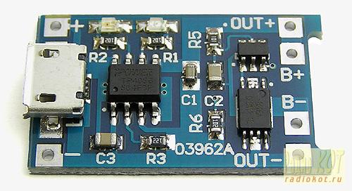 Питание решено было сделать от Li-Ion аккумулятора от неисправного смартфона, зарядку его - через китайский модуль на TP4056. Модуль выбран с защитой на случай будущей замены аккумулятора на 18650 без встроенной защиты.