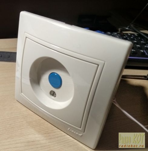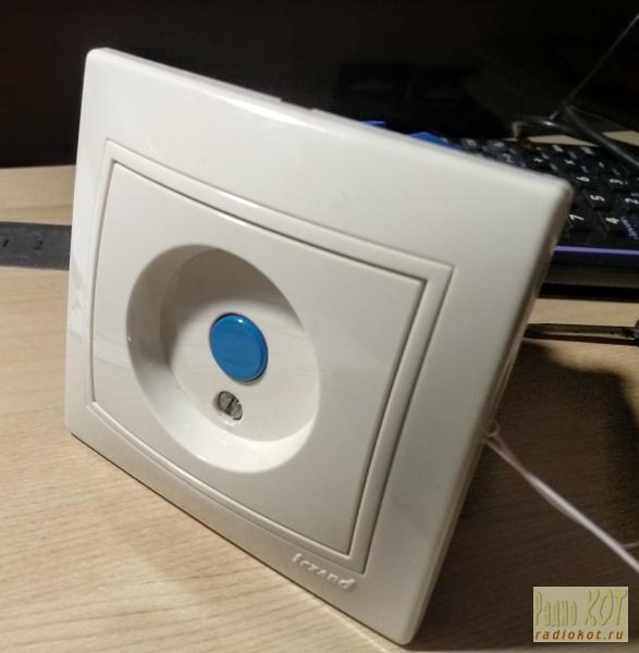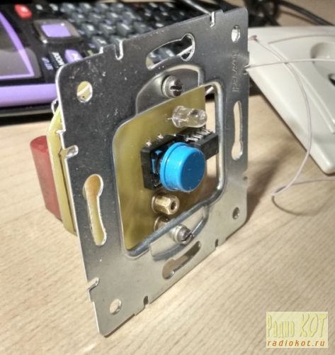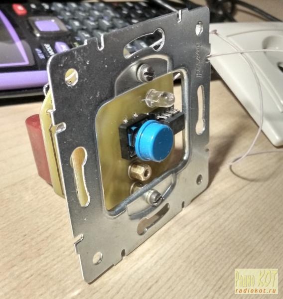 Платы скреплены между собой стойками DI5M 3x10 и прикручены посредством стоек DA5M 3x5 к металлической рамке от телевизионной розетки Lezard 701-0303-129, в корпусе которой просверлено отверстие для светодиода (шаблон прилагается).