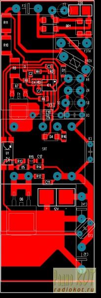 Конденсаторы С6, С8 - типа Y1 на напряжение не менее 1кВ Конденсаторы С9, С10, С11- размера 1206 Конденсатор С1- на напрядение 450В Конденсаторы С14, С15- на напряжение 25В Конденсатор С13- пленочный на 250В Остальные конденсаторы рамера 0805