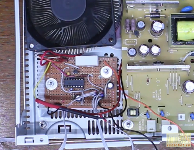 Часть 1 - Лабораторный блок питания. Полистал я наш родимый форум - ну очень много тут различных блоков питания. И простых и сложных... Но выбор пал на lm723. Эта микросхема была специально спроектирована для создания лабораторных блоков питания (на ней мажду прочим промышленные лабораторники собирают). Для линейных блоков питания (всё же со стабилизацией и малыми шумами у импульсных не очень). Схем на lm723 очень много. Я взял с какого-то турецкого сайта : Мало компонентов и самое главное - грубая и точная регулировка тока и напряжения. В качестве силового транзистора был выбран транзистор TIP35C в корпусе TO-247 (он по заверениям даташита справляется с долговременной нагрузкой в 25 ампер). В качестве источника питания был выбран блок питания от разбитого монитора. На нём особо останавливаться не буду - обычный импульсный блок питания. (правда я поднял на нём напряжение до 22-х вольт). В данном случае как мне кажется не имеет смысл заострять внимание на моём конкретном источнике. В вашем случае наврядли будет тот же самый. Здесь вообще что угодно можно использовать. Хоть любой импульсный хоть трансформатор. Корпус понравился. Достаточно прочный, компактный и туда идеально всё помещалось. Так как я поднимал напряжение на одном из выводов исходного источника питания (линия инвертора подсветки) то на втором выводе (линия 5 вольт) напряжение поднялось до 8 вольт (и растёт в случае нагрузки) то идеально чтобы запитать кулер охлаждения! Источник питания и кулер с транзистором просто идеально вписались в корпус Печатную плату стабилизатора я не стал делать. Из-за простоты схемы мне показалось что быстрее и проще собрать её на дырявой макетке