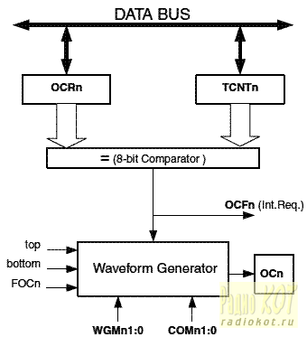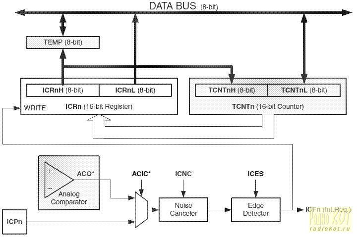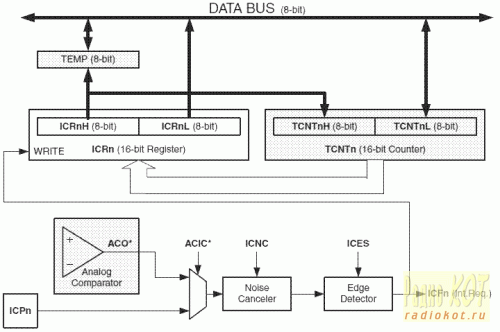Весь алгоритм ворочается в обработчике прерываний по захвату. Таким образом, декодер автоматически подстраивается к текущей скорости передачи кода. Заметим напоследок, что работа с 16-битными регистрами таймеров на 8-битной AVR имеет некоторые особенности: так, при чтении сначала положено читать младшую половину регистра, а потом - старшую. Обязательно учтём это в своей прошивке. Теперь посмотрим на симистор и его управление. Как вы наверняка знаете, оно значительно отличается от "просто подай ток", как было в случае с электромагнитными или оптическими реле. Впрочем, в простейших случаях можно делать и так, но всё же более правильным и энергетически выгодным считается управление короткими импульсами тока. Как видно по схеме, мы подаём эти импульсы на управляющий электрод через импульсный трансформатор, что даёт некоторые преимущества: гальваническую развязку основной схемы от управляемой (так безопаснее пользователю), надёжную посадку управляющего электрода на общий вывод по постоянному току (это значительно снижает вероятность ложных срабатываний симистора). Удобно также то, что трансформатор превращает однополярный импульс в два разнополярных, что также повышает надёжность отпирания симистора. А коль скоро у нас неподалёку стоит контроллер, логично, что с его помощью можно сформировать и импульсы. Используем для этого таймер 0 и его дополнительный режим "ШИМ-генератора". Если кратко - есть специальный регистр, и есть специальный выход, который выдаёт 0, если текущее значение таймера меньше, чем значение этого регистра, и 1 - если больше. Запускаем таймер - и на выход пошли импульсы с нужной нам длительностью. Имеем 8 битный таймер, значит, период импульсов будет в 256 раз больше периода тактовой частоты. Таким образом, частота импульсов у нас получилась чуть менее 4 кГц. Поскольку для надёжного отпирания симистора (по крайней мере, из "обычных" серий) требуется развивать импульсы тока минимум в десятки мА, контроллеру в этом помогает ключ VT1 IRLML2803 КП526А9, а R4 ограничивает максимальный ток этих самых импульсов. Я выбрал уровень около 100 мА. Керамический конденсатор C2 помогает сглаживать импульсы потребления по питанию в моменты коммутации. Соответственно, рекомендуется устанавливать его в непосредственной близости к указанным элементам. Остановимся подробнее на импульсном трансформаторе T2. В качестве которого был выбран..."малогабаритный импульсный трансформатор" МИТ-16В от Георгиевского трансформаторного завода. Кому-то может с первого взгляда показаться древней экзотикой, но в продаже они по прежнему нередко встречаются. Чёрный, пузатый, "малогабаритен" он, конечно, только по советским меркам. Чем же был продиктован такой выбор? Во первых, конечно, тем, что они были у автора в наличии. Во вторых, по советски дубовая конструкция со сплошной заливкой и неломкими толстыми выводами! Имеется нужное количество обмоток с нужным коэффициентом трансформации. Но подходят ли параметры этих обмоток? Согласно распространённой в интернете информации, наш транс может скушать до 210 мА тока подмагничивания, что вполне достаточно для любого адекватного по мощности симистора. С импульсными параметрами особой ясности нет. Фигурирует странная фраза, трансформатор, мол, "применяется в усилителях в диапазоне частот от 250 кГц до 30 МГц", что бы это ни