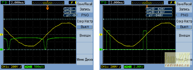 Ещё более точно длительность импульсов можно настроить, подкручивая частоту тактового генератора через регистр OSCCAL. Точное его значение зависит от индивидуальных параметров RC-генератора конкретно в вашем контроллере. Но в целом, делать это не обязательно. Элементы R1 C1 - это "снабберная цепочка". Она может понадобиться, если вы будете коммутировать нагрузку с явно выраженной индуктивной составляющей, а может и не понадобиться, если возьмёте т.н. snubberless симистор, или будете коммутировать в чистом виде активную нагрузку. Имейте ввиду, что при закрытом симисторе она даёт небольшую утечку тока, что может быть заметно при коммутации очень слабых нагрузок. Например, импульсных блоков питания мощность в единицы Ватт. Резистор рекомендую мощностью не менее 1 Вт, конденсатор надо выбирать либо из серий, специально рассчитанных на работу в силовых сетях (MKP x2, К78-2) на напряжение не ниже 305В, либо обычный плёночный, но уже не ниже, чем 630В. Ещё не будет лишним напомнить, что симистор всем хорош по сравнению с электромагнитными реле, кроме одного - в открытом состоянии он всегда имеет падение напряжения в районе 1...2В. В реле ситуацию можно улучшить, используя качественные платиново-иридиевые да хотя бы серебряные контакты и, главное, увеличивая их площадь. А здесь это неустранимо, поскольку физически обусловлено его принципом действия. Отсюда неизбежные потери при протекающем токе и нагрев. Вот почему на плате симистор был установлен на радиатор SK29-25S, этого достаточно для мощности нагрузки где-то до 500 Вт. Если вам захочется коммутировать что-то более мощное, придётся позаботиться о дополнительном охлаждении. Трансформаторы, импульсы...зачем так сложно? Есть же специальные оптосимисторы. Да они ещё и включаются синхронно с переходом через ноль! Предположу, что некоторые опытные разработчики сидят и думают так, читая всё это. Действительно, можно вспомнить популярный оптрон MOC3082M, или даже российские АОУ179/5П51. Они позволяют легко и просто превратить обычный симистор в необычный аналог высоковольтного оптореле. Кроме того, они содержат схему, которая включает управляемый симистор не совсем в тот момент, когда пользователь подал ток на светодиод, но лишь синхронно с началом нового полупериода сетевого напряжения. Что это даёт? Несколько более лёгкий режим включения, поскольку и ток через симистор нарастает не резко, а более плавно, вместе с нарастанием мгновенного напряжения. Меньший уровень помех в момент включения. В общем, неплохая в нашем случае вещь. Кстати, если кто знает, как она схемотехнически реализована в недрах таких оптронов, расскажите об этом в комментариях. А можем ли мы сделать что-то подобное? Давайте попробуем. Очевидно, что для этого нам понадобится какая-то синхронизация контроллера с сетевым напряжением. по крайней мере, с его переходами через ноль. И именно для создания детектора перехода через ноль мы подали напряжение с выпрямителя не напрямую на C5, а через дополнительный диод. Таким образом, мы сохранили на выходе выпрямителя тёмное нефильтрованное напряжение, которое далее подаём на простейшее пороговое устройство на биполярном транзисторе BC847 КТ231А9. Сравнительно низкое сопротивление в цепи его базы имеет значение, чтобы C3 и всякие паразитные ёмкости успевали разряжаться в момент перехода нуля сети, создавая пульс