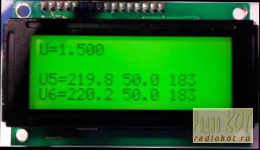 Должен сказать что при хорошем (без помех) напряжении усреднение вроде как и не нужно. Измерение частоты. Измерение частоты выполнено на двух 16-битных таймерах для двух каналов. Частота тактирования таймеров выбрана MCK/32, т.е. 1.5МГц: *TC0_CCR = 0x6; //Для канала 5. Запретить счет. За 20мс таймер насчитает 30 000 отсчетов. Таймер стартует и останавливается вместе с подсчетом суммы квадратов. Усреднение не производится. Индикатор Вывод значений на индикатор осуществляется стандартным способом: sprintf (buffer, "U5=%1.1f %1.1f %in",AverVolt5,Freq5fl,Samples5);//100мкс Значение 0x94 – третья строка индикатора. Другие значения: 0x80 – первая строка 0xС0 – вторая строка 0xD4 – четвертая строка Можно выводить не с начала строки, написав PrintBuf(0x80 + 7); - седьмая позиция первой строки. Русские символы также поддерживаются. Проект не доделан до конца. На данный момент ломаю голову как сделать фазометр. Не то чтобы я не знаю как :). Просто в нерешительности – сделать на компараторах и завести на внешнее прерывание, или банально на таймере. Литература: Аналого – цифровое измерение переменного напряжения https://www.kit-e.ru/articles/circuit/2010_07_144.php Метод измерения действующего значения напряжения с применением МК https://habrahabr.ru/post/193022/ Многофункциональный ваттметр с гальванической развязкой https://radiokomp.ucoz.ru/load/skhemy_na_mikrokontrollerakh/mnogofunkcionalnyj_vattmetr_s_galvanicheskoj_razvjazkoj/2-1-0-50 Цифровой ваттметр на МК. https://radiokot.ru/circuit/digital/measure/23/ Учет электроэнергии, считывание информации со счетчика Меркурий 230, протокол счетчика https://www.ab-log.ru/smart-house/mercury-230