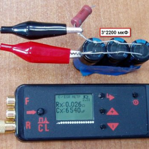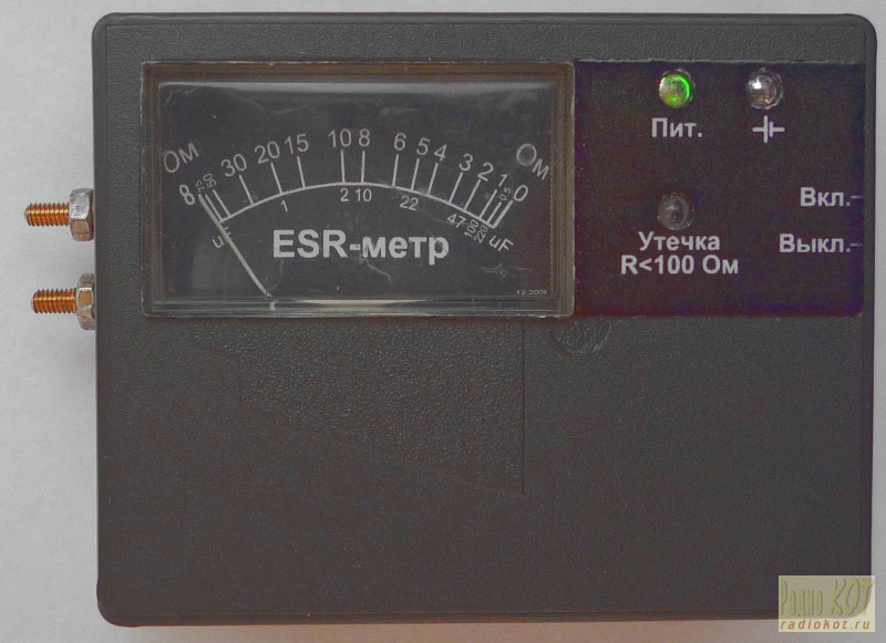 Автор: SSMix В статье описан простой портативный аналоговый ESR-метр с расширенным диапазоном измерения до 75 Ом и с функцией индикации короткого замыкания или утечки по постоянному току. В качестве индикаторной головки использован стрелочный микроамперметр от старого кассетного магнитофона. В практике ремонта различной аппаратуры незаменимым помощником является измеритель внутреннего эквивалентного сопротивления электролитических конденсаторов – ESR-метр. В радиолюбительской литературе описано множество неплохих и несложных в повторении ESR-метров, однако лишь немногие из них способны измерять ESR вплоть до 75 Ом, что часто бывает необходимо при проверке электролитических конденсаторов малой ёмкости (1 мкФ, 0.47 мкФ, 0.33 мкФ). А ведь такие электролиты тоже существуют и их надо как-то проверять.Также автор не встречал ни одного ESR-метра, который бы позволял дополнительно определять проверяемый конденсатор на утечку или пробой. Так, например, при коротком замыкании проверяемого конденсатора обычный ESR-метр, осуществляющий измерение на переменном токе, покажет малое внутреннее сопротивление, и пробитый конденсатор будет ошибочно принят за исправный. Оба этих требования были учтены при разработке собственного ESR-метра, фото которого показано на фото ниже. Прибор следующие технические характеристики: - предел измерения ESR, Ом...............................................0…75; - частота измерения, кГц....................................................80; - амплитуда проверяемого напряжения, мВ..........................<30; - пределы индикация утечки по постоянному току, Ом..........0…100; - напряжение питания (CR2032), В.....................................2,2…3,6; - потребляемый ток, мА......................................................8; - габаритные размеры со слеженными щупами, мм.................71х53х30; - вес, г..............................................................................65; - индикация разряда батареи питания; - съёмные щупы, убираемые внутрь корпуса при транспортировке.