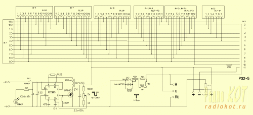 Автор: Азамат Купил тут по случаю коробку различных газоразрядных индикаторов, на радостях собрал очередные часики Sunny_Clock-2, впаял новые из коробки ИН-12Б без проверки, новые же, и ОП! два! индикатора без неона! не горят! Мат, выпаивание и замена... Cхема: Повышающий преобразователь напряжения классический, на MC33063, для мобильности, внутрь тестера можно установить аккумуляторы и брать тестер с собой на радиорынок для проверки на месте. Для выбора катодов ГРИ применил галетный переключатель ПГ2-5 12П1Н, просто такой был, видел в сети на зарубежном сайте тестер, там по катодам стоит К155ИД1. Миллиамперметр на 10 мА в "тумбочке" не нашлось, пришлось ставить на 1мА, и подобрать шунт (для М42303 сопротивление рамки миллиамперметра 444,5 Ома, шунт 49,38). Выключатель SA1 - питание, SA2 - для шунтирования миллиамперметра, SA3 - выбор катодов индикаторов на панельках от 0 до 9, 10 положение это разделительная точка в ИН-12Б, и в последнем 12 положении можно проверять ГРИ на 4 контактном разъеме. Кнопка SB1 появилась при проверке ИН-13, с ограничивающим резистором 10к зажечь полный столбик при 170 вольт на аноде не удалось, с кнопкой сопротивление падает до 5 и все горит (ИН-13 подключается на "+" анод, катод на "-", и вспомогательный катод на "-220к"). Мелкие разъемы "R" "U" "RU" поставил для измерения внешним мультиметром общего сопротивления ограничивающего резистора и для точного замера высокого напряжения. Детали: у кого, что найдётся в "тумбочке", если автономность не нужна, можно поставить просто трансформатор для анодного (подобрать из серии ТА или ТАН) или включить 2 маленьких 220v/12v низковольтными навстречу друг другу, токи не большие(без возможности регулировать высокое напряжение). Панельки под индикаторы пока еще найти можно в сети, хотя я под ИН-1 не нашел. Повышающий преобразователь напряжения лучше собрать по схеме с "полу драйвером" полевика, схема есть на форуме, мне было лень искать в "тумбочке" p-n-p транзистор. Переменные резисторы с линейной зависимостью от угла поворота (у меня первые попавшиеся под руку) Конструкция: Под корпус нашелся какой-то переговорный пульт CM-200X Commax, в SprintLayout на сетке 1мм рисуем дизайн передней панели, печатаем, накладываем, сверлим.Далее крепим панельки и т.д., спаиваем по схеме. Тестер собирался как "конструкция выходного дня" и печатную плату не делал, собрал на макетке. Монтаж желательно МГТФ. Фото: Дизайн передней панели: Вид на монтаж: Внимание! Схема содержит опасное для жизни напряжение! Будьте осторожны! Включаем, все работает: Для проверки ИН8-2, ИН-14 и подобных, с короткими выводами, использую вот такой удлинитель из двух проводков. Новые можно сразу в 4-х контактном разъеме проверить: За три часа прогнал через тестер все свои ГРИ :) Все! Благодарности. - РадиоКоту за то, что он есть. - Авторам часов на газоразрядных индикаторах - за публикацию материалов и прошивок - Игорю и Тагиру за панельки - Второй половине и детям - за терпение