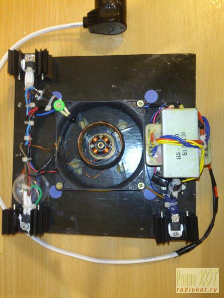 Для изготовление воздушного трансформатора, вам понадобится взять достаточно мощный кулер (рассчитывайте, что он должен будет крутить со скоростью примерно в 5-10 оборотов в секунду некую конструкцию весом грамм в 150-200), изолированный медный (намотачный, в общем) провод, диаметром не меньше 0.5мм (ведь для 40-ка с лишним светодиодов нужно где-то полампера, не меньше), густрой клей или мебельный лак и просто супер (быстосохнущий) клей.