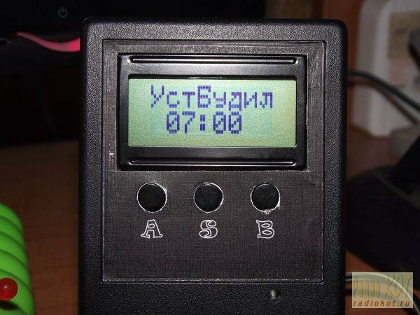 "УстБудил" - Установка будильника. Будильник настраивается точно также как и время. Следующее нажатие на кн. "S" возвращает к показу времени, режимов сигнала и даты. Видео работы устройства выложил на RuTube: https://rutube.ru/tracks/4824083.html?v=ddd41f5c842f317ce7d8c169baf9c171 Ну вот вроде бы и всё. Если будут вопросы по гаджету - с удовольствием отвечу после конкурса. Всем хорошего настроения, и приятного времяпровождения с паяльником. Удачи!