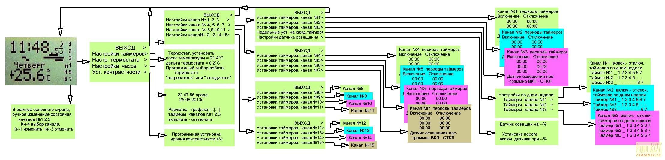 Программа и схема этого таймера, создана на основе предыдущей разработки 4_х канального таймера https://radiokot.ru/circuit/digital/home/171/