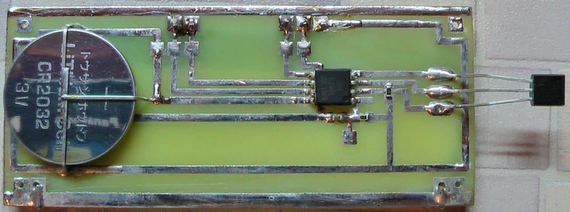 Ножки для управления индикатором определяются при помощи define непосредственно в самой библиотеке. Часть таблицы символов индикатора в библиотеке закомментирована из-за экономии места, микроконтроллер ATtiny25, самая первая версия программы (компилятор CodeVisionAVR) занимала 1023 слова из 1024 возможных : вместе с термометром. В принципе можно было бы и успокоится, но я хотел еще реализовать небольшое энергосбережение, пришлось экономить, была урезана таблица символов и родная CodeVisionAVR библиотека для работы с DS18B20. Описывать программу не вижу ни какого смысла, программа предельно проста, очень короткая и максимально закомментирована. Отдельно хочу отметить, что в погоне за энергосбережением я выяснил, что нельзя ножки микроконтроллера, которыми управляется индикатор подвешивать в воздухе, он "обижается". Поэтому перед переходом в режим standby, выводы для управления индикатором делаем входом с подтяжкой.