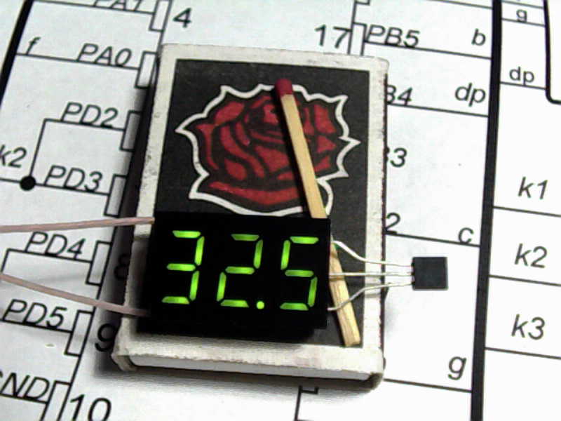 Я не уверен, что мой вариант термометра с применением семисегментного индикатора самый маленький.