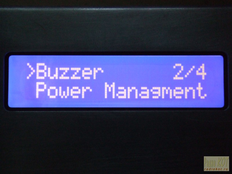Почему почти? Так весь функционал в прошивке о которой пойдет речь только сейчас.) И так после включения выводится приветственное сообщение которое у меня выглядит так