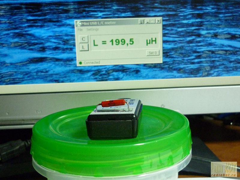Ниже привожу фотографии прибора в работе. Над миниатюрой фотографии подписан известный номинал детали, на заднем плане, на мониторе, видно запущенную программу и определенное значение. Кликните на фотографии для просмотра увеличенной версии.