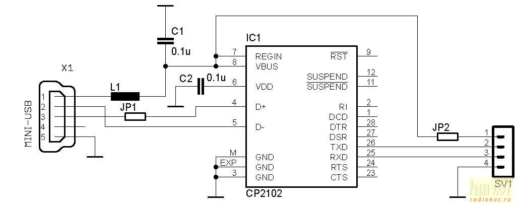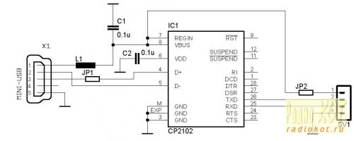 Автор: Bicycler Вся эпопея началась пару недель назад, когда я собрал зарядное устройство для шуруповерта и для удобства отладки решил вывести лог с него на СОМ порт. Переходник на MAX232 у меня был, СОМ порт на рабочем компьютере, где я вечерами и занимался отладкой, также был. По этому, проблем не возникло. Проблемы начались дома, когда выяснилось, что на древнем ноутбуке СОМ порта нет. Пришлось доставать еще более древний, а сидеть с двумя ноутбуками уже не удобно. Преобразователь USB-TTL В этот момент у меня в очередной раз возникла идея собрать переходник USB-COM. Просматривая статьи о FT232 я неожиданно для себя наткнулся на микросхему СР2102. Из обвеса к этой микросхеме требуется только два керамических конденсатора, да и цена примерно в 50 рублей сильно стимулировала к дальнейшей разработке. Ничего пугающего кроме корпуса QFN28, с которым я раньше не работал, в ней не было. Было принято решение пробовать. Плата была разведена и изготовлена методом ЛУТ. Дорожки 0,3 получились на удивление хорошо. Пайка феном прошла успешно с первой попытки. Когда припой плавится, микросхема сама занимает свое место, а при попытке ее сдвинуть сама возвращается. Процесс изготовления, без учета времени разводки, занял один вечер. При подключении к USB переходник сразу распознался системой и затребовал драйвер, который и был успешно скормлен. У меня везде стоит win XP 32 по этому проверен только этот драйвер. Драйвера лежат здесь: https://www.silabs.com/products/mcu/pages/usbtouartbridgevcpdrivers.aspx. В теме выложить не смог, не лезет. Об особенности моей схемы. У меня присутствует дроссель по питанию. Его единственная функция - это переход над проводником для упрощения разводки печатной платы. С тем же успехом можно поставить SMD перемычку.