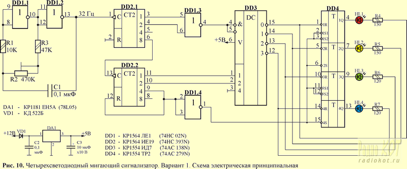 Мигающие светодиодные сигнализаторы на микросхемах КМОП