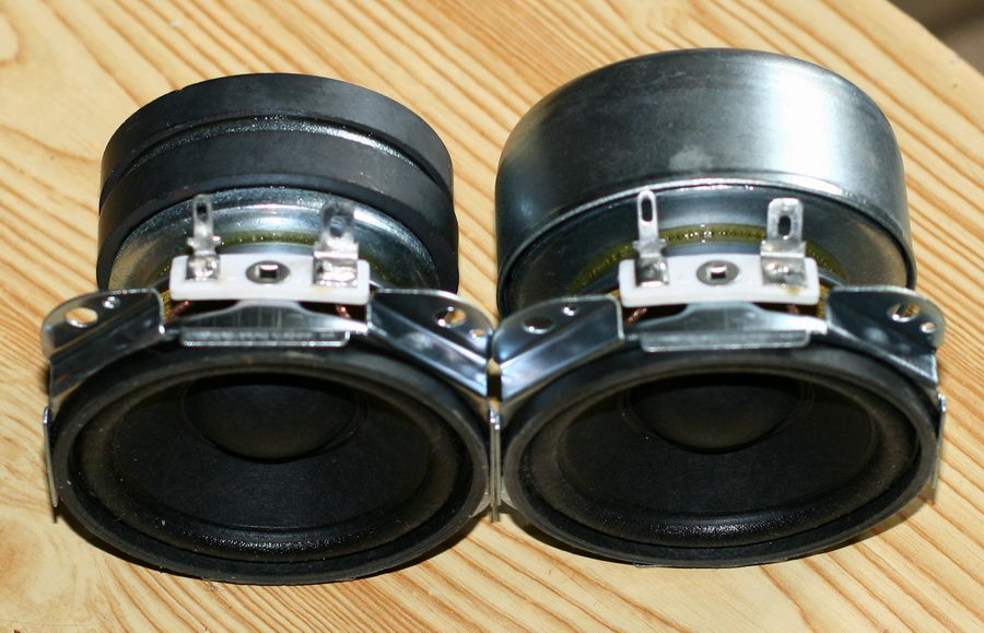 В отличие от динамиков на виденном Вами домашнем театре, в самодельной конструкции под "чашкой" устанавливается дополнительный магнит, что заметно усиливает магнитное поле в зазоре (и улучшает параметры динамика)... А частота механического резонанса очень даже зависит от жесткости подвеса и центрирующей шайбы, что бы там не преподавали товарищу Муркизу...