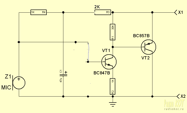 В общем, хочу попросить знающих подсказать по поводу питания, можно ли вообще с ним что-то сделать, а так же помочь разобраться, как можно заставить схему нормально усиливать этот микрофон, может вообще другую схему посоветуете. Схемы на ОУ в будущем, пока хочется в это палкой потыкать .