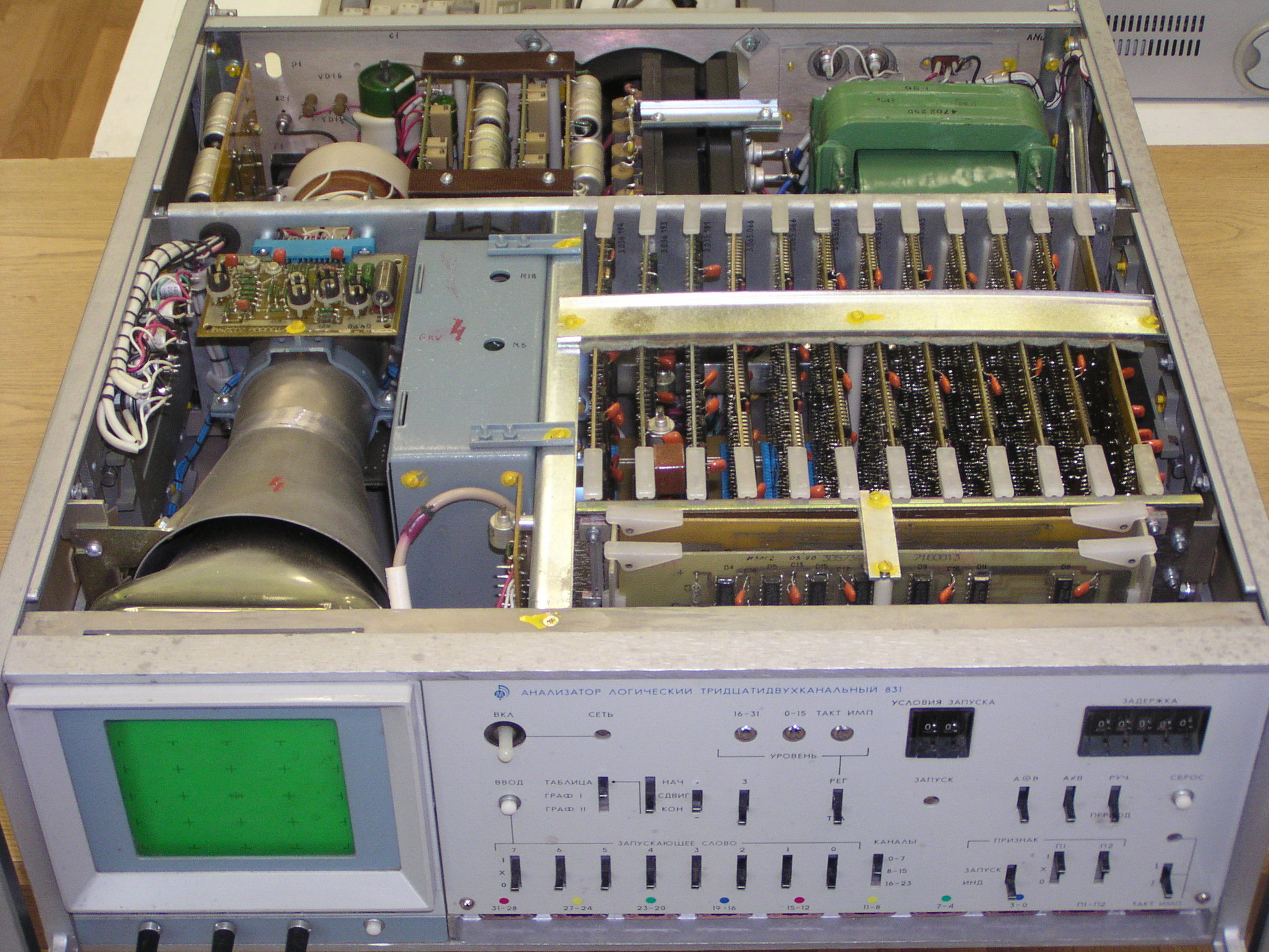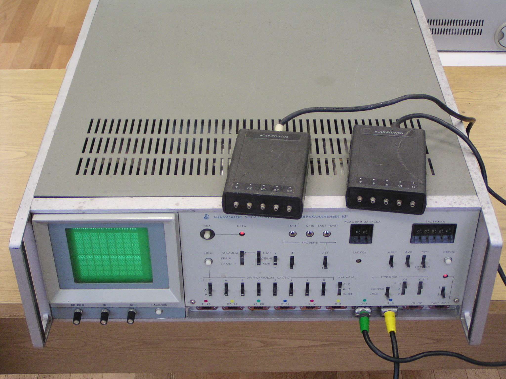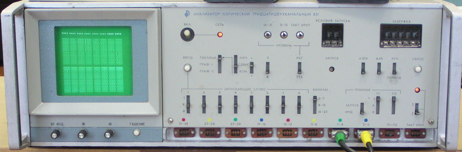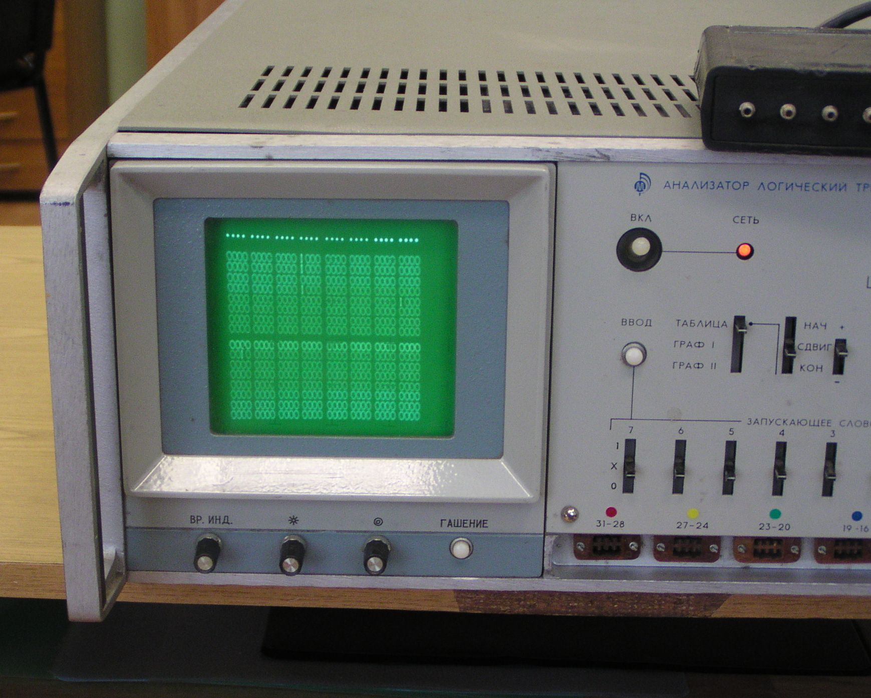 Скажу больше: у меня этот прибор чисто для антуража - некомплект. Мне он достался по случаю, но бесплатно. Нет входных формирователей логического уровня, да и в последний раз я так и не смог получить картинку на его мониторе. Зато он является логическим продолжением аналогового анализатора спектра С4-74, а вот он-то у меня является рабочей лошадкой на пару с геной Г4-151 (не попал на фото).