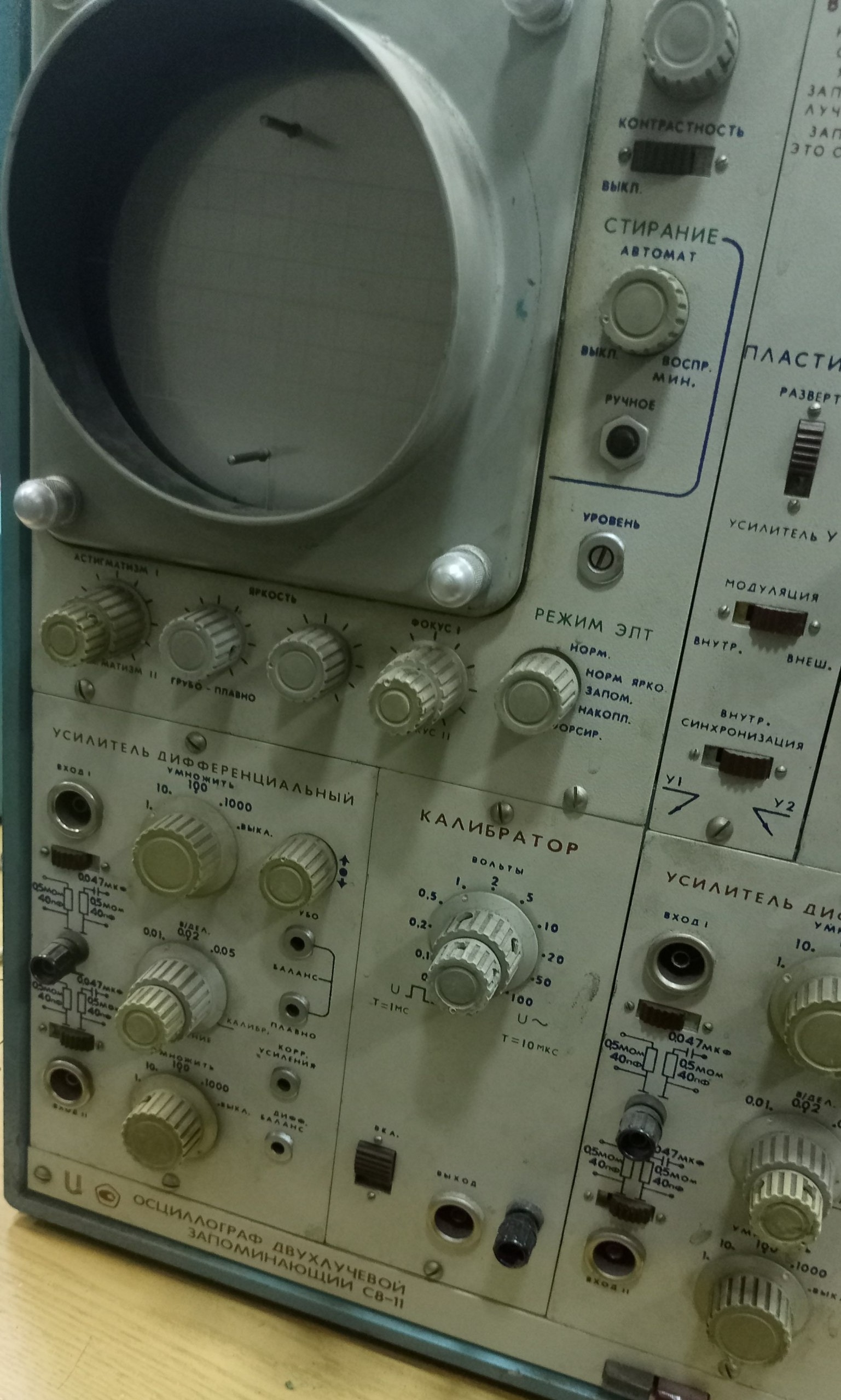 А такой аппарат в тему? Похоже (не открывал), что одна лампа 6П9 сдохла - нижнюю часть искажает сильно. Лет 25 точно не включался и почти как новый, хоть и 1963 года выпуска:-)