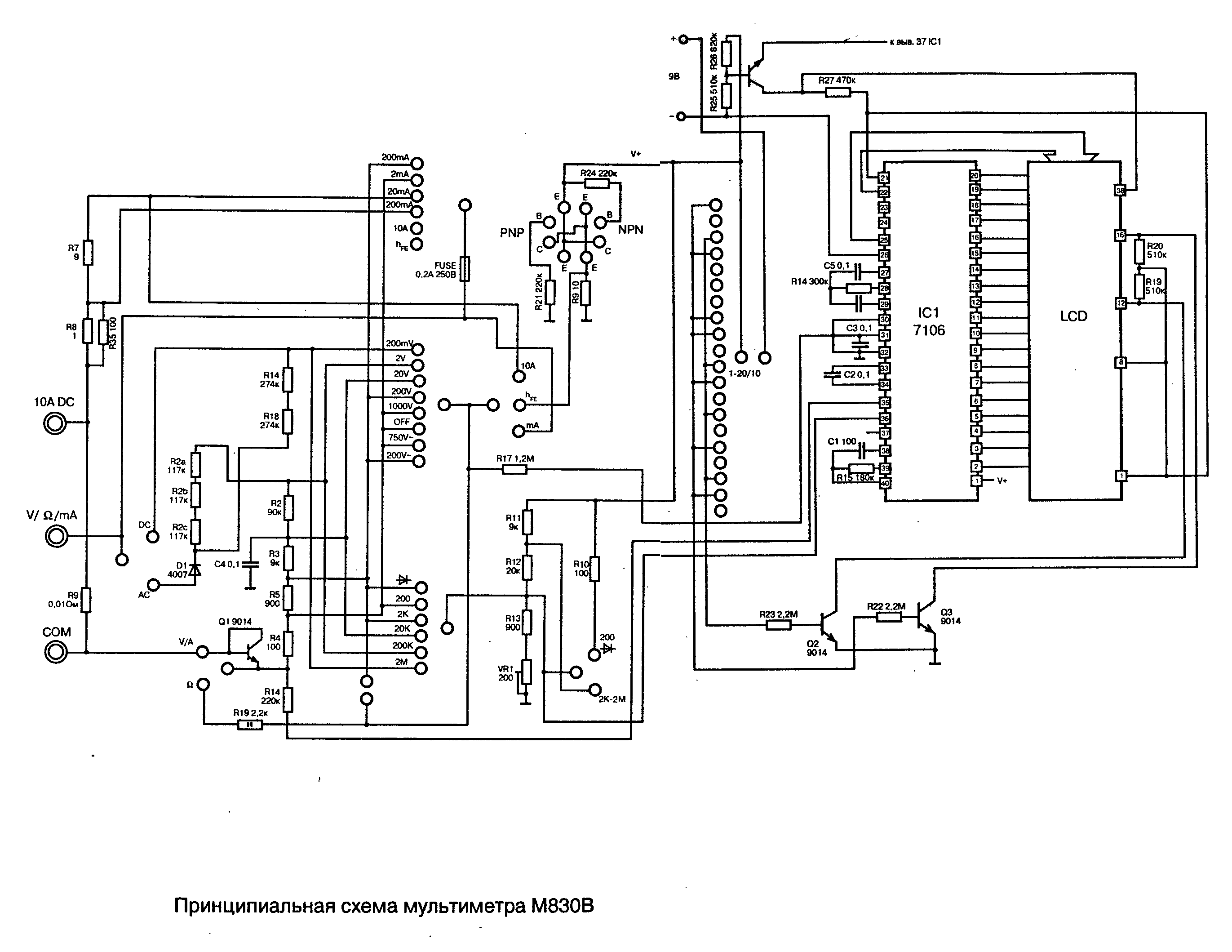 Извините, перепутал, схема была выложена в другой теме... http://www.radiokot.ru/forum/download/file.php?id=47393 Схема действительно как на стр. 82-83, очень похожа, но у меня немного другая - на моей плате нет транзисторов вообще и нет емкости на делителе возле переключателя омметра.