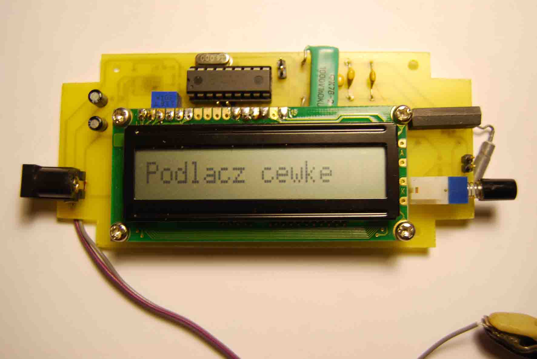 Я такой собрал, но он пока не фурычит. Прошивка с сайта не работает, нашел с польского сайта http://sp7dqr.waw.pl/lcmeter_pl.html . С этой прошивкой хоть на индикаторе надписи появились, но пока не работает. Может у меня лапы кривые, но вроде все правильно, все десять раз перепроверил. Будем еще бодаться. А пока все выглядит так.