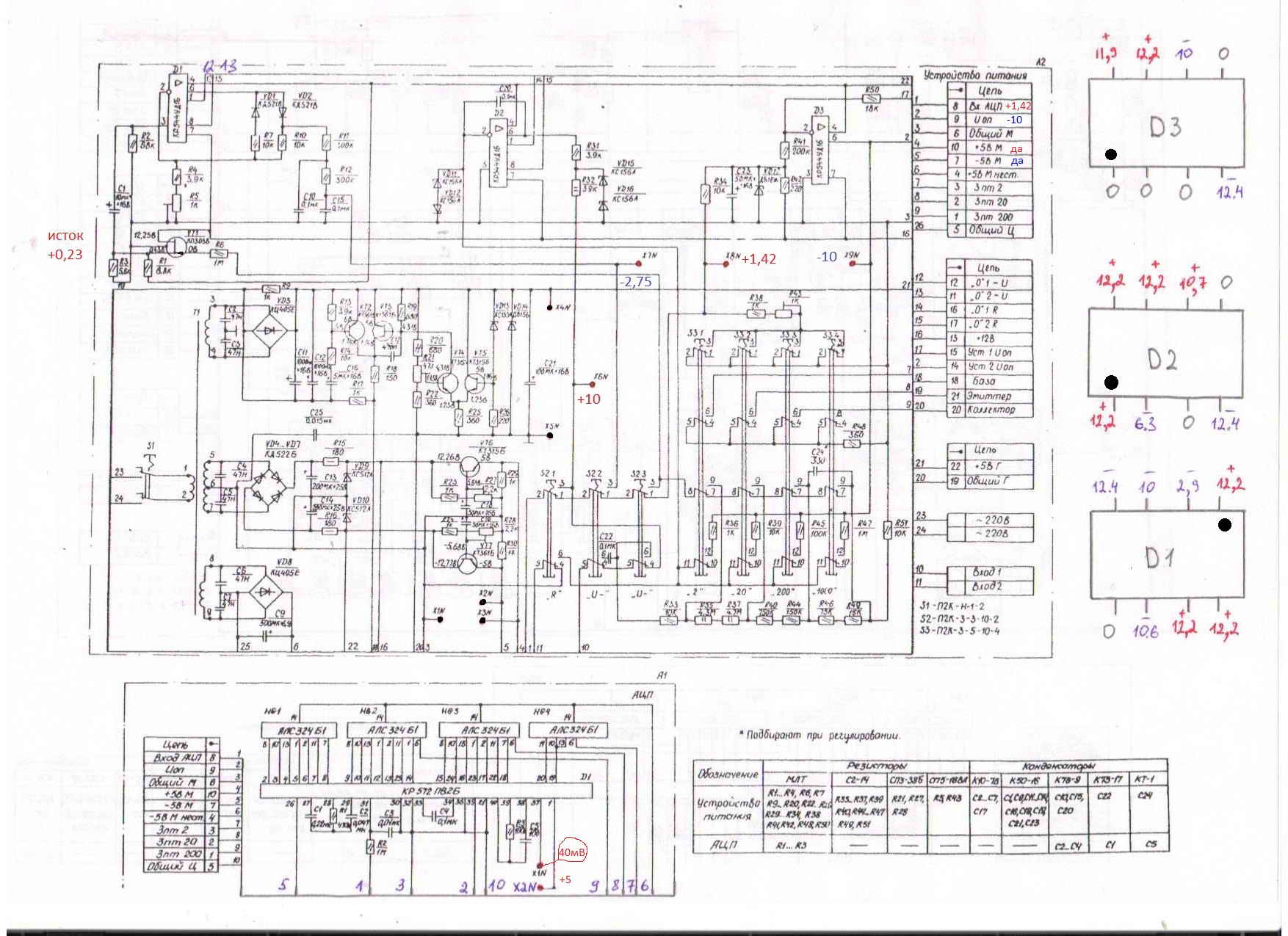 Резистором, выведенным на заднюю стенку регулируется "НОЛЬ" в режиме измерения переменного напряжения!! Блин... Хрен поймёшь чего.. По схеме- это, действительно, регулировка Uоп, по инструкции- "ноль" переменки..
