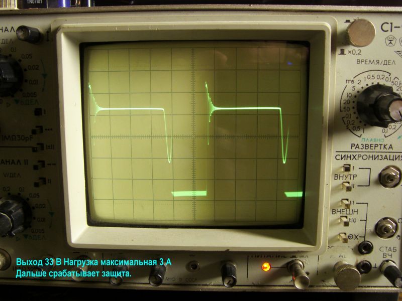 Помогите плиз. Собрал схему http://radiokot.ru/circuit/power/supply/04/ Запустилась с пол тычка но.... Нужно 16 в 3а.На холостом ходу выдает 17в под нагрузкой только 6.3в Нагрузка 60 ватная лампочка 12 вольт Греется только выходной диод. Все остальное практически холодное(до 40 градусов) Это нормальнальный просад для таких схем или нет.