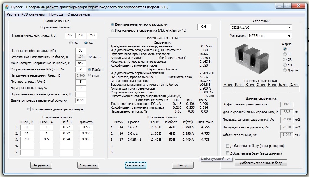 Как расчитать габаритную мощность импульсного трансформатора ?