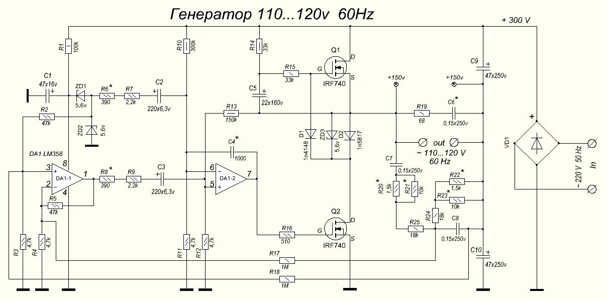 А эта схема на точность и не претендует ! Задача была получить синус и напряжение 120вольт и 60Гц ! Кому не нравится точность-можете не собирать,я никого не заставляю...