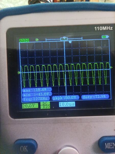 если на дежурку нагрузки нет, то этот сигнал неправильный. я тебе сказал, какой сигнал правильный - с затухающими колебаниями. а на первичке ты сможешь посмотреть?