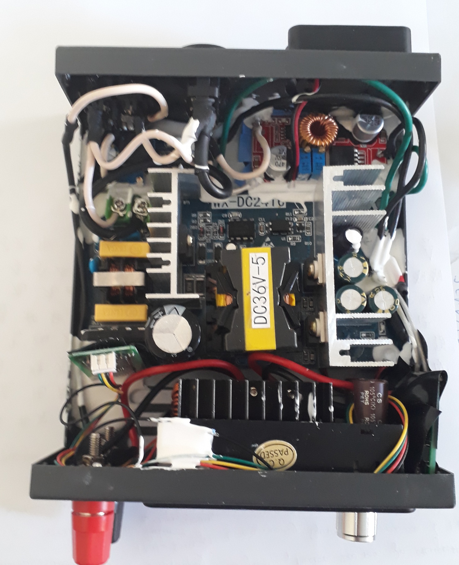 Спасибо,сейчас нашел. Посмотрел видеообзор на эти модули, указывают, что входное напряжение модуля ограничивается максимальным входным напряжением линейного стабилизатора операционного усилителя. Бывают на таких модулях стабилизаторы с макс 30 вольт, бывают с макс 35в. Те, что с 30 вольт - автор не рекомендует подавать на них более 27 вольт, при 30 вольтах бывали взрывы стабилизаторов. Информация из видео : XL4005 понижающий DC DC CC CV модуль (XL4015) (1:55 минута) Blaze Electronics. Судя по ограничениям, указанным продавцом, у меня стабилизатор макс. 35 вольт... Может быть, есть похожие готовые платы DC DC CC CV, такого же небольшого размера, но с ограничением входного напряжения более 36 вольт?