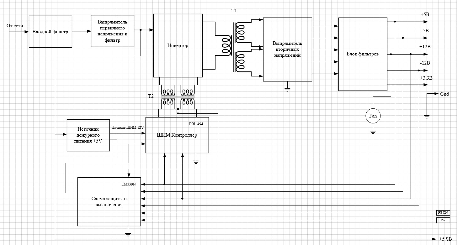 Добрый день Я студент 4 курса ОмГУПСа, делаю курсовую по Электропитающим установкам Одно из заданий - нам выдана Принципиальная схема БП ATX 250, нам необходимо по ней написать Структурную схему блока питания ATX 250. Само собой чтобы выполнить задание для начала нужно понять схему