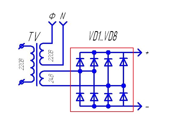 Размеры намного меньше восьми 245-х диодов! Это факт! Д245 стоят всего 25 рублей http://www.moris.ru/~sztp/price.html Диод Д 245А - 300В/10А/1Вт. Судя по схеме нужен готовый диодный мост с токами не менее 20А!