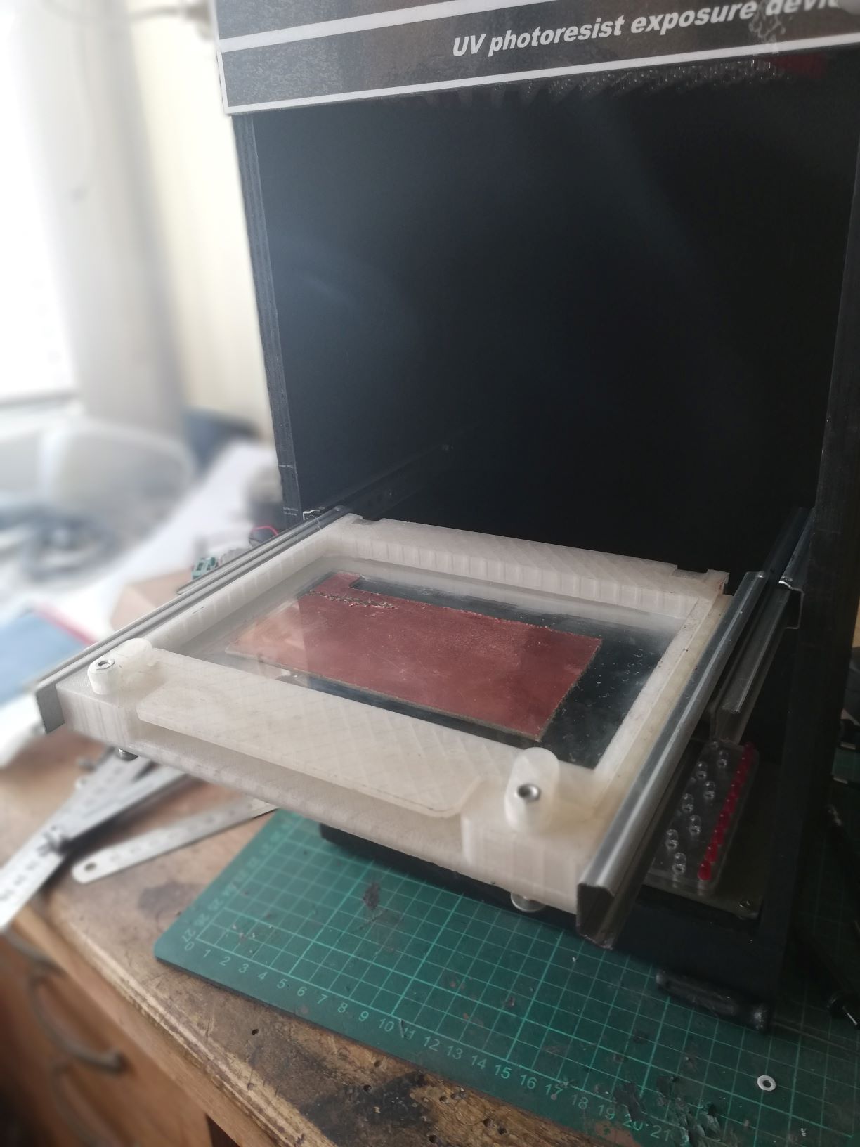 Вопрос к Уважаемому автору прошивки. МОНСТЕР, а возможно ли сделать разное время засветки для верхней и нижней лампы? Или коррекцию +/- от предустановки?. Дело в том, что я пытаюсь сколхозить пневмоприжим для двухсторонних плат, но толщина и материал нижней стороны по оптическим свойствам отличается от верха. Получается снизу 8...10 мм оргстекла/поликарбоната с пневмолабиринтом, сверху 0,1 мм лавсановой пленки. Не могу понять - скажется ли это на времени засветки. Пока рассуждаю только теоретически, поскольку наши восточные братья еще не прислали фоторезист:(