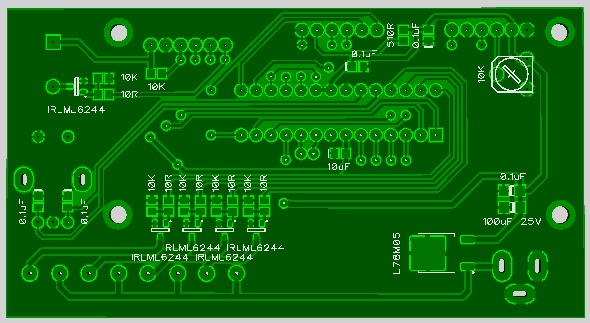 Схему брал с 13 странице в архиве. Схема под СМД корпус. Перерисовал под ДИП, развел плату. Так как в схеме Вы использовали обозначение шины, а при увеличении картинки (PDF документа) все расплывалось, была вероятность просто перепутать порты назначения. Но все в порядке - не ошибся.