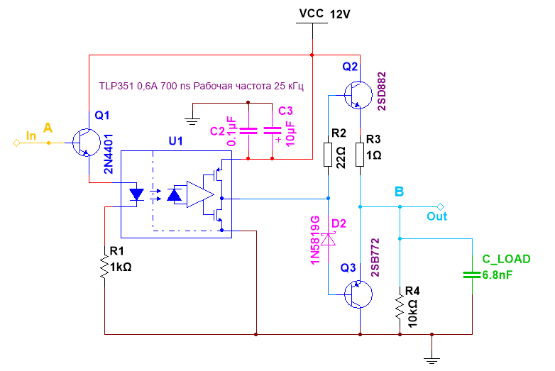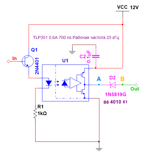 На картинках синий луч на вых TLP а желтый после диода. Ну и с предыдущего поста мои вопросы остались